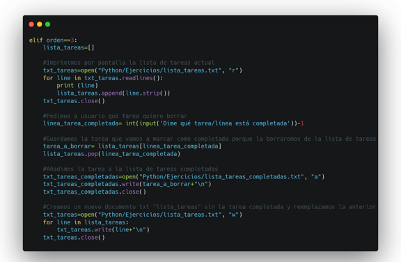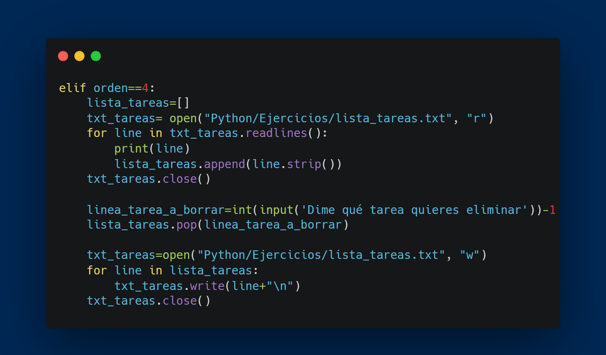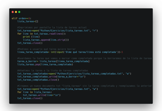 Listas: Utilización de listas para almacenar y manipular los datos de las tareas.